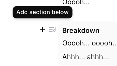 - In the song structure, find the section you want the new section to follow. On the left-hand side of that section, you'll see a "+" symbol that will say "Add section below" when you hover over.