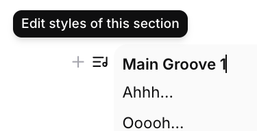 - Simply click inside the text box for that section (e.g., Main Groove 1, Breakdown).